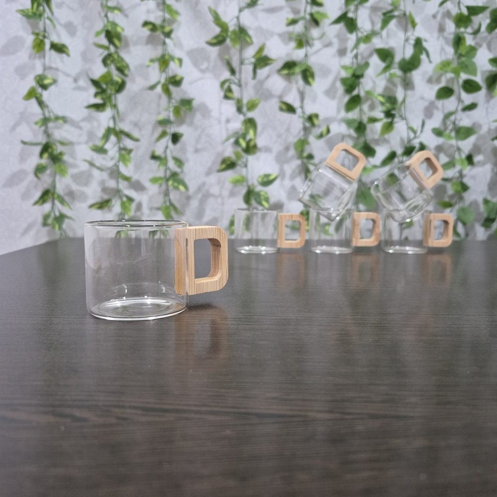 خانه شات، استکان و لیوان پیرکس شات خوری پیرکس دسته چوبی