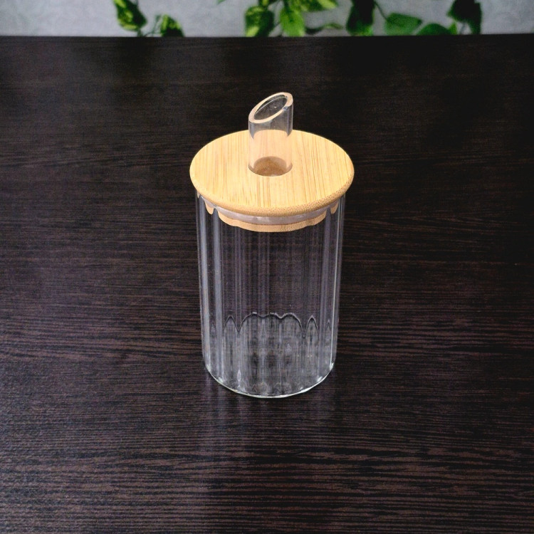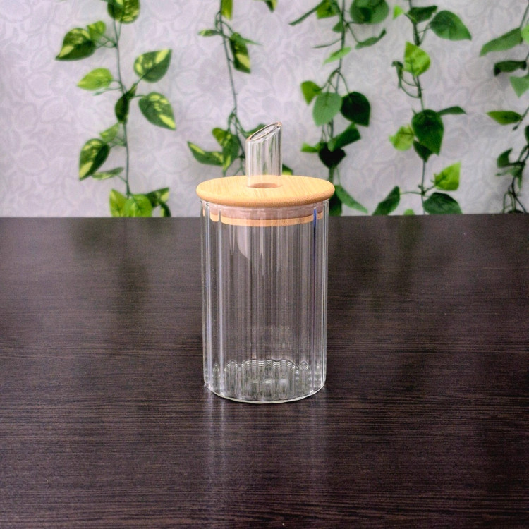 شیشه پیرکس مقاوم به حرارت و درب بامبو واشر دار