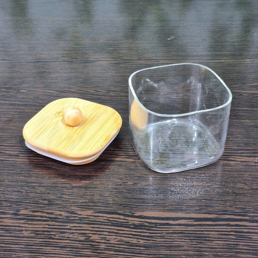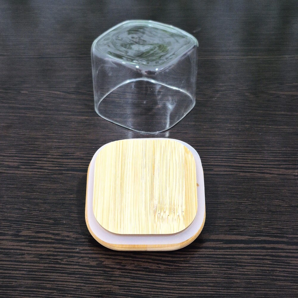 قندان پیرکس مربعی با درب بامبو