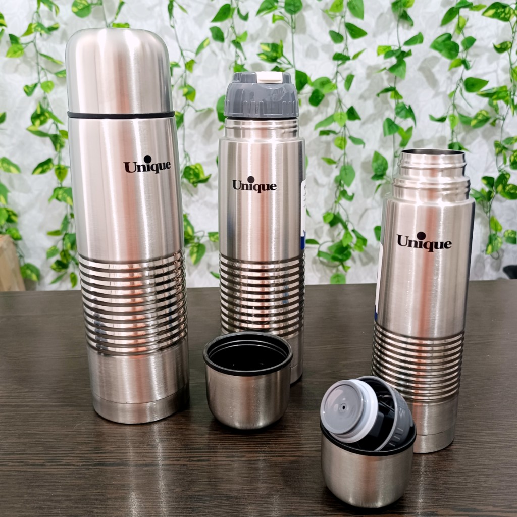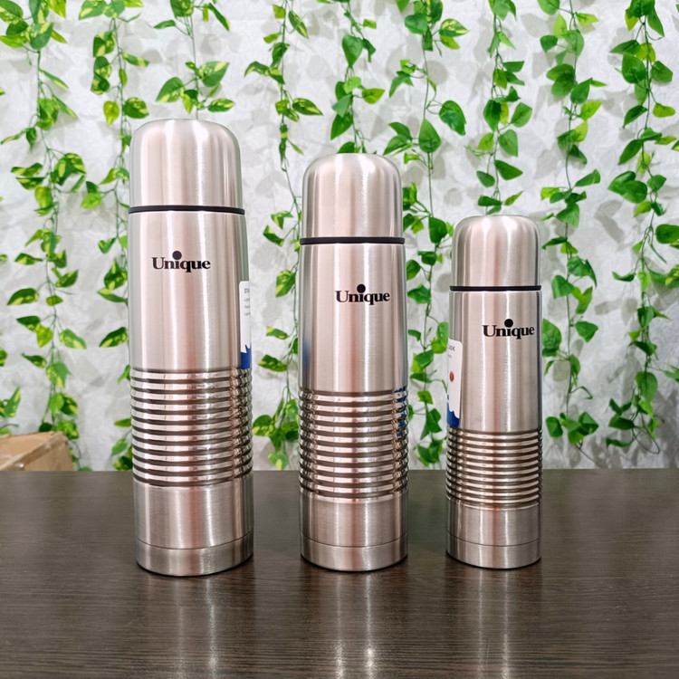 فلاکس قلمی برند یونیک با طراحی جمعوجور و کیفیت عالی، انتخابی مناسب برای نگهداری آب گرم و سرد در طول روز است. این فلاکس در سه سایز ۰.۵، ۰.۸ و ۱ لیتر عرضه میشود و بدنهای از استیل ۱۸/۸ ضد زنگ دارد. درب فلاکس به صورت لیوان طراحی شده و دارای کیف حمل برای راحتی جابجایی است.